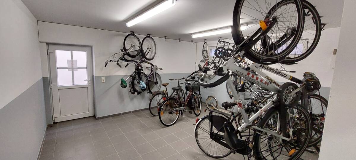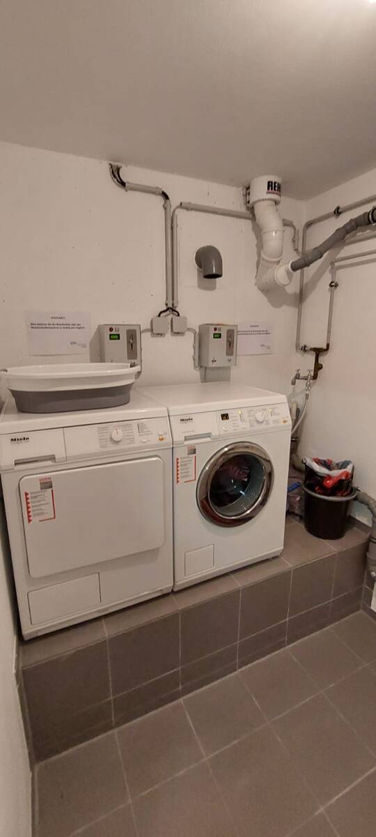 Zu der Wohnung gehört ein abschließbarer Kellerraum, ein Fahrradkeller und eine Waschküche mit Münztrockner und Waschmaschine.