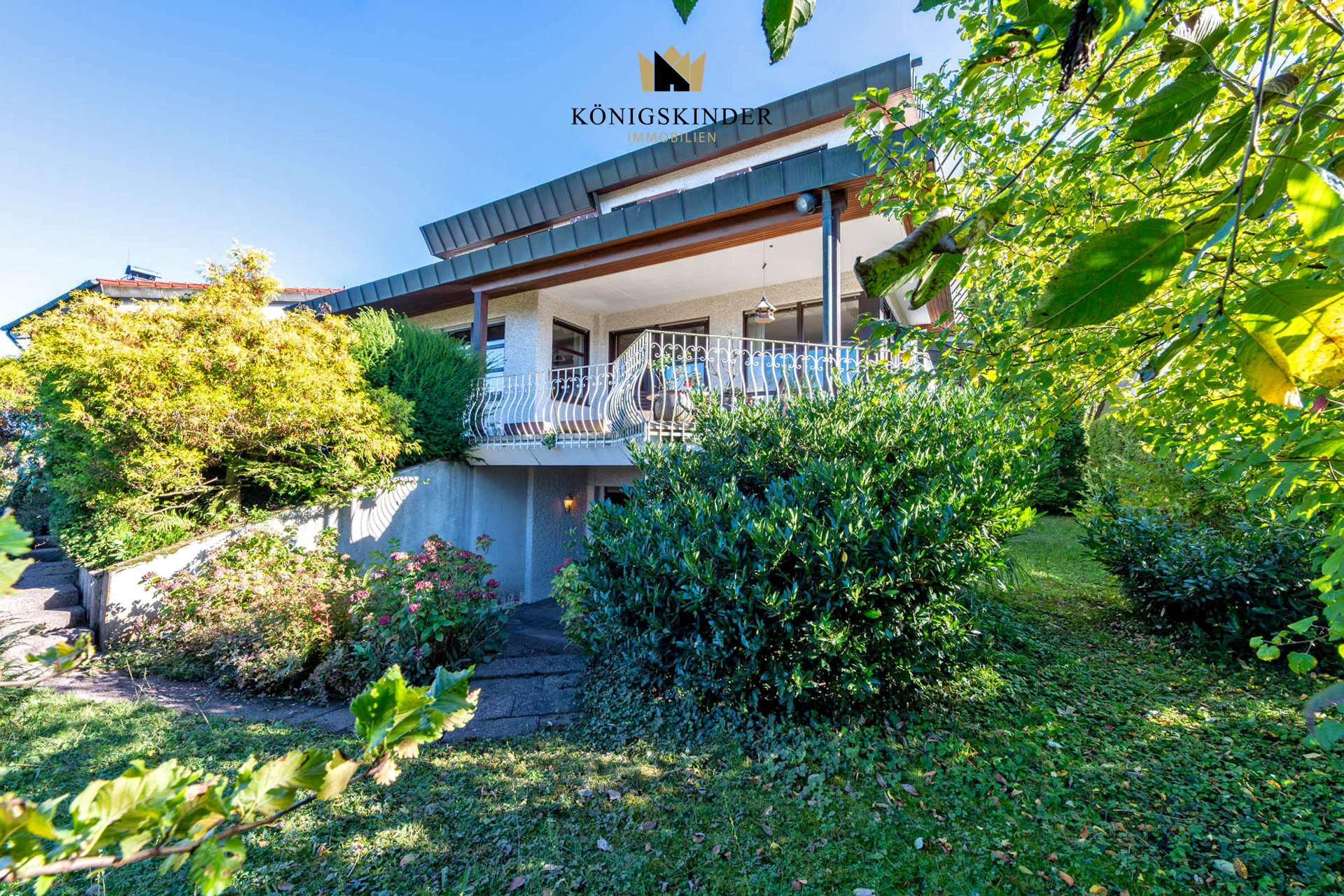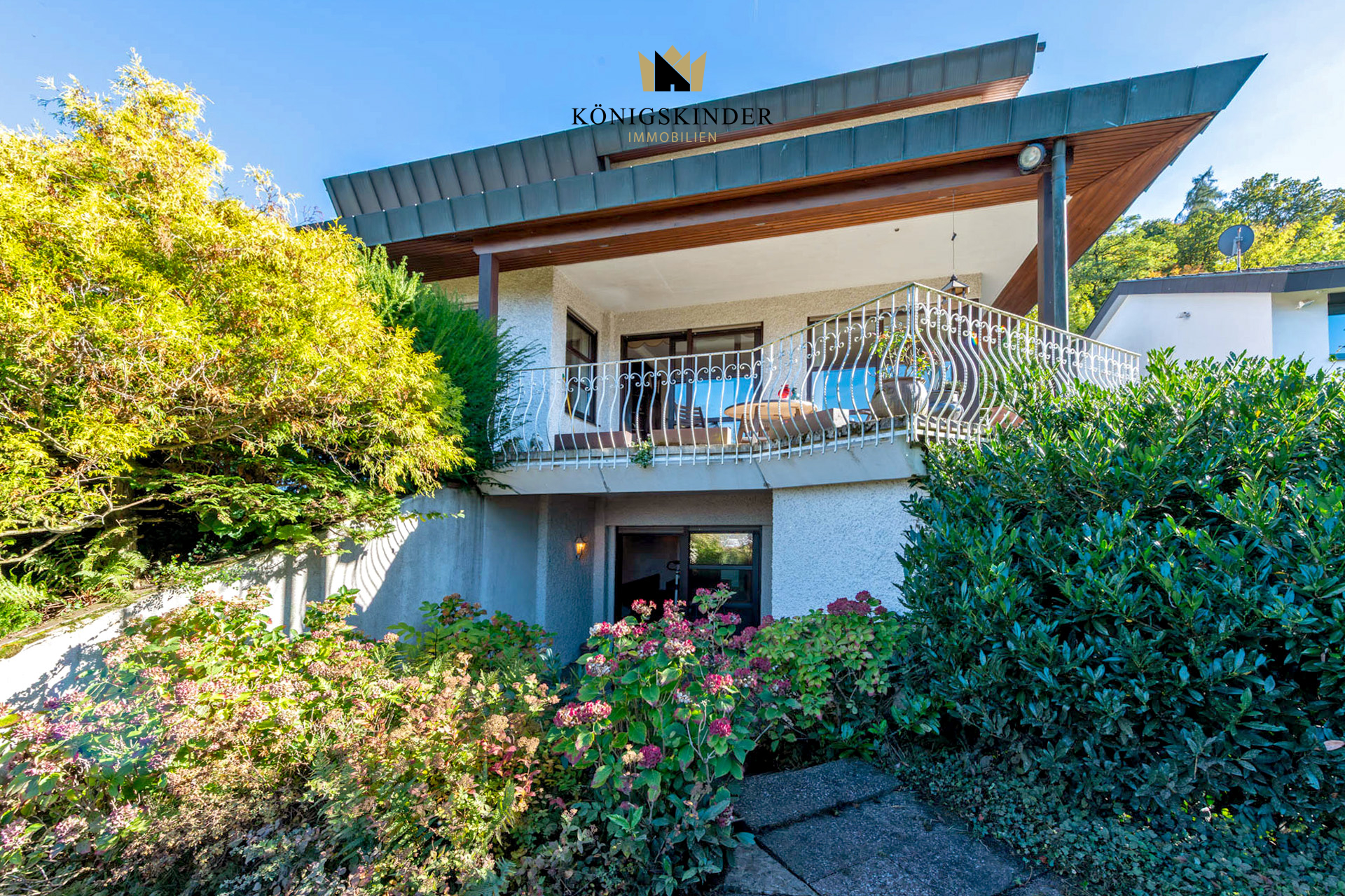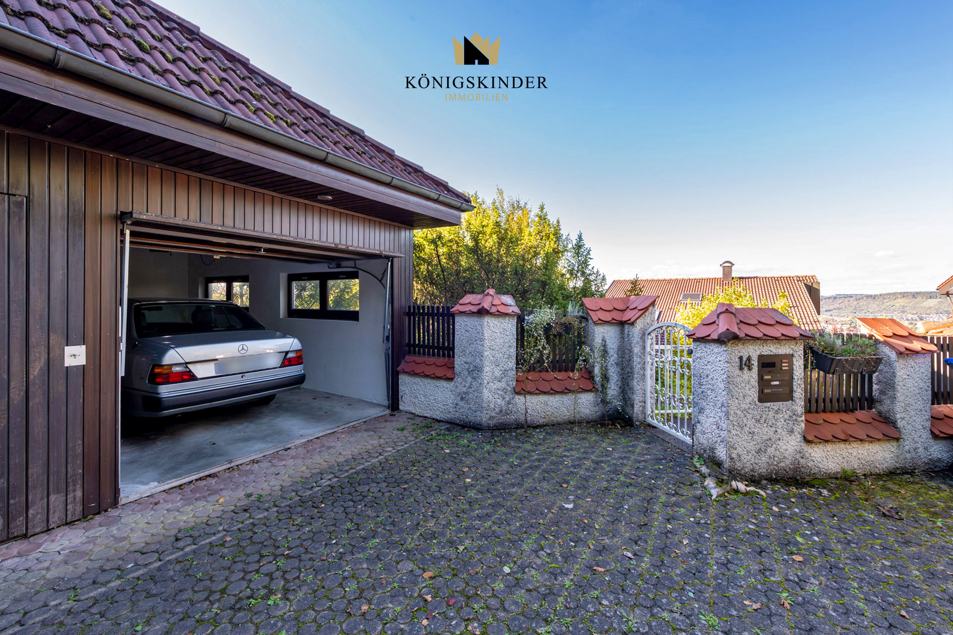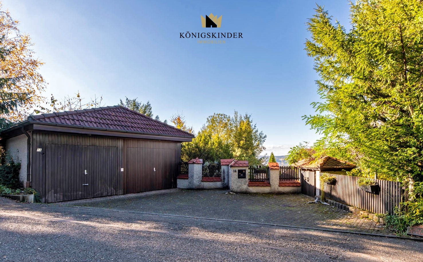 Der ehemalige Bauherr hat es aus genau diesen Gründen entsprechend gestaltet: von der Anliegerstraße sehen Sie nur das Dach und die Doppelgarage am Zugang - diskret und unauffallend in den Hang geduckt.