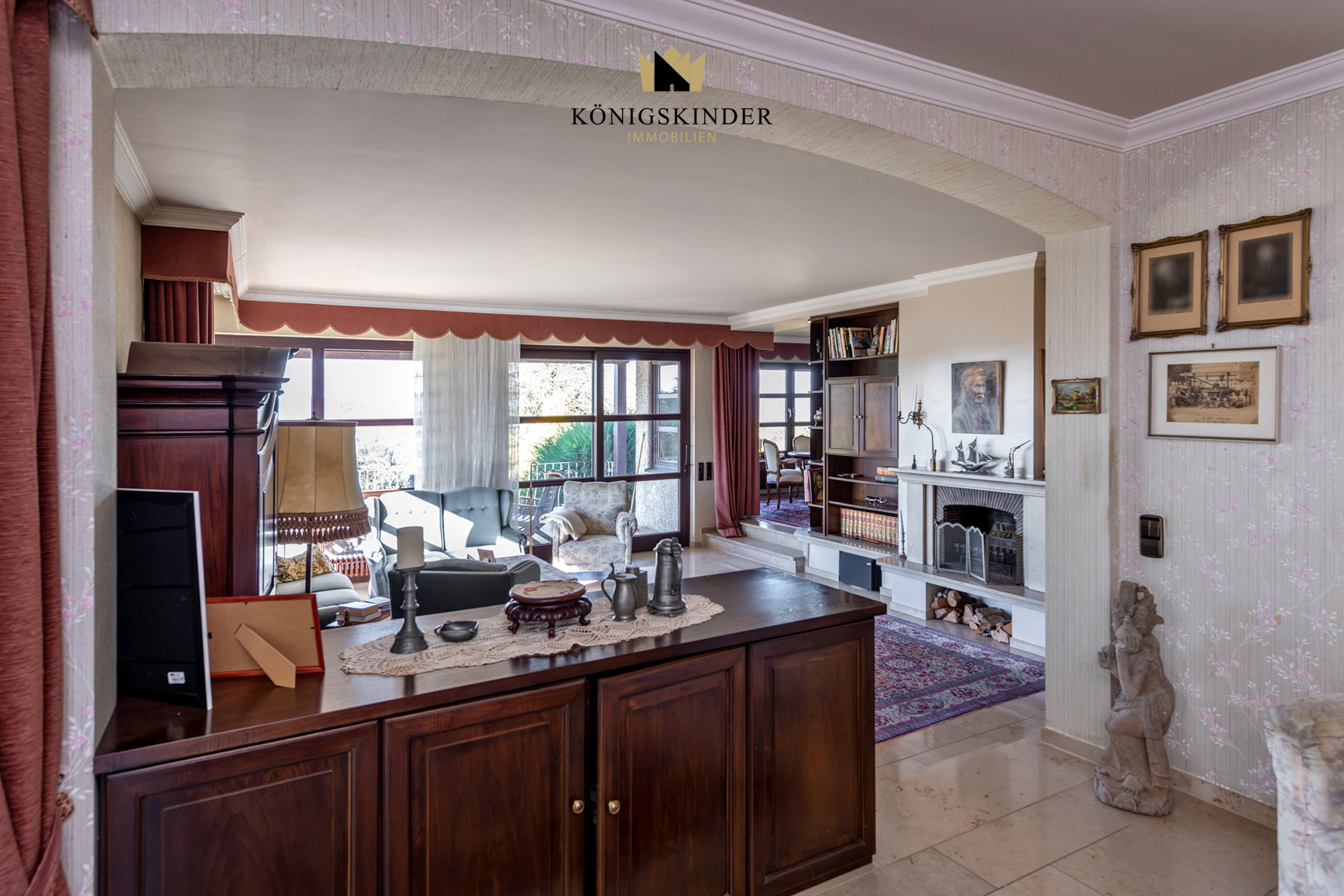 Die Hauptwohnung wird dominiert von einem eleganten, repräsentativen Wohnbereich der mit kleinen Stufen in unterschiedliche Wohn-Zonen optisch geteilt ist: ein Kaminbereich um auf dem Sofa in aller Ruhe oder trauter Familienrunde den Sonnenuntergang zu genießen. Dazu ein gemütlicher Erker für Besprechungen, den "five-o'clock-tea", für eine Bibliothek oder vielleicht auch mal ein Hauskonzert, die Kultur- und TV-Ecke - was immer Sie mögen.