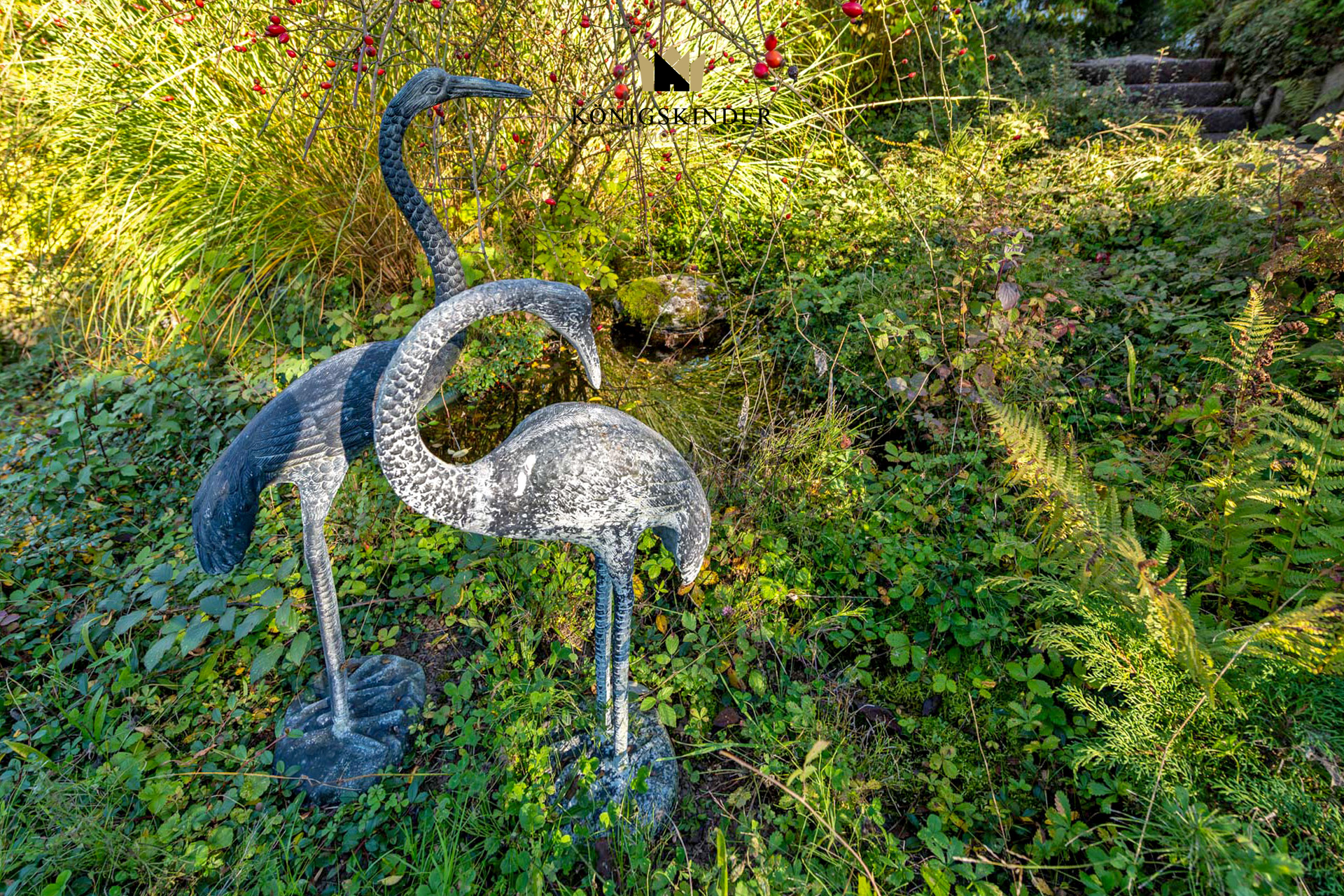 Das Grundstück ist in drei Ebenen terrassiert: vor dem Haus eine große Rasenfläche mit Abstand zur Straße, hinter dem Haus ein von Büschen, Sträuchern und Bäumen eingerahmter Garten mit einem kleinen schmückenden Teich.