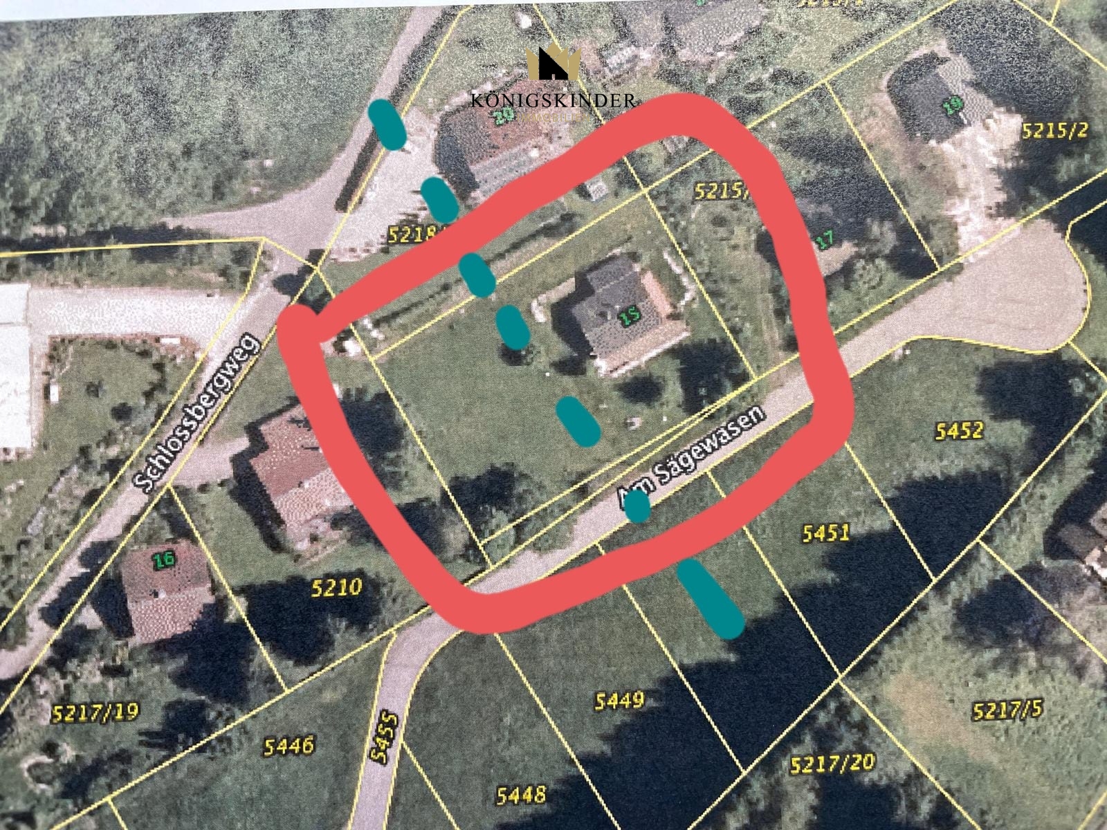Unverbindliche Illustration Einfamilienhaus.........Unverbindliche Illustration Tiny House......viel Grün......und..... tolle Aussicht......von hier auch......nach oben zum Waldrand...... schön viel Platz......direkt an der Anlieger-Straße......und erschlossen......zum entspannen......so siehts von oben aus.Bild