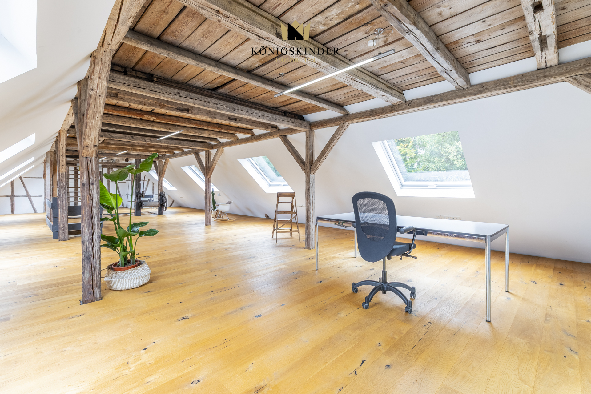 Echtholzboden, viel Licht und der authentische Industriecharakter machen diesen Ort besonders. Wer Raum sucht, um Ideen zu entwickeln, Projekte umzusetzen und gleichzeitig schön zu wohnen, wird sich hier schnell zuhause fühlen.