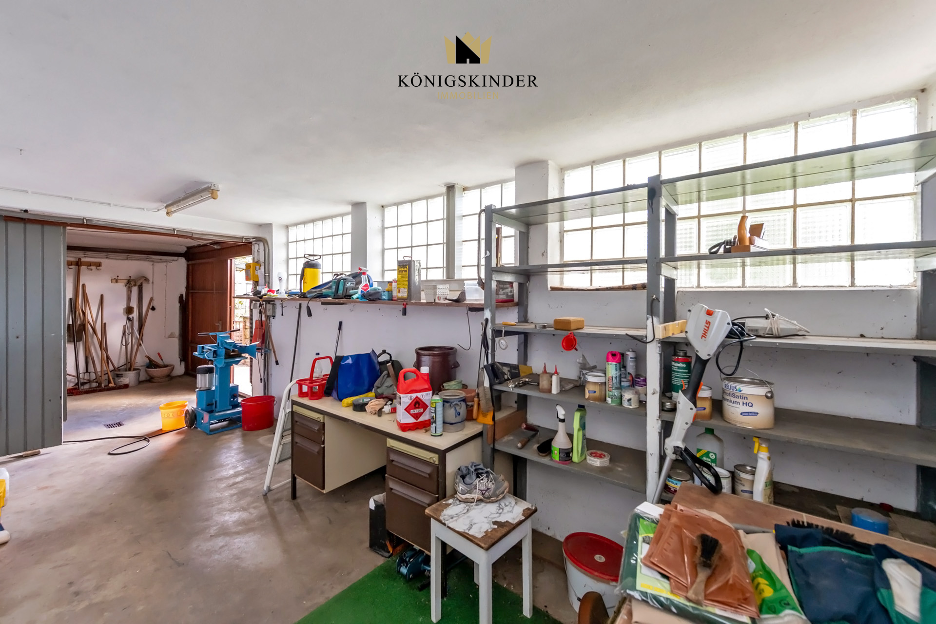 Das Grundstück zeichnet sich durch seine Größe und die Möglichkeit der individuellen Gestaltung aus. Im Souterrain befinden sich neben einer Garage und weiteren Stellplätzen Abstellräume, eine Waschküche, ein Gewölbekeller sowie ein Werkstattbereich.