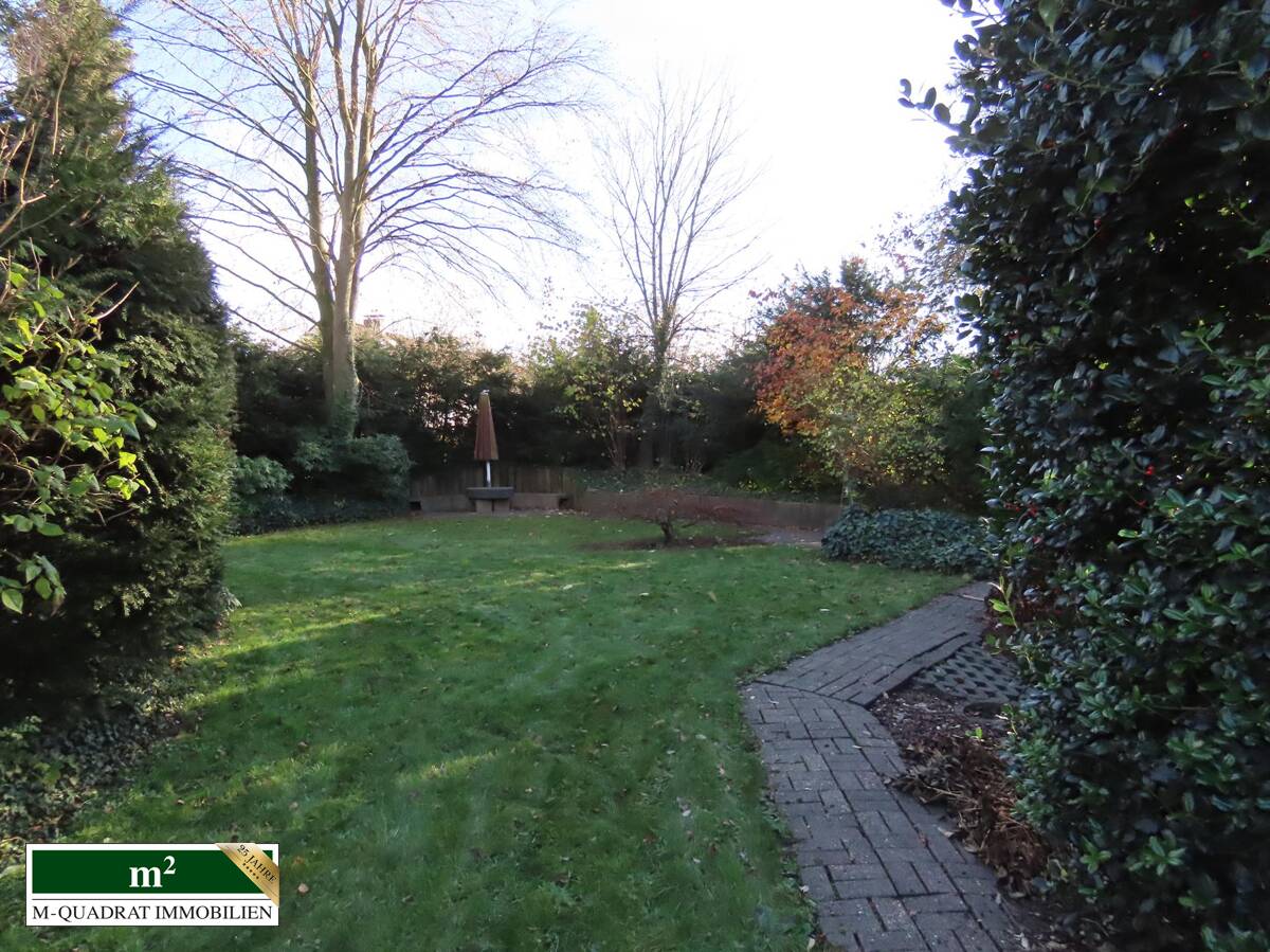 Den Garten betritt man wahlweise über ein eigenes Tor, durch das Wohnzimmer des Hauptteils, durch die Küche oder den Keller. Von der Terrasse betritt man eine nichteinsehbare grüne Pracht mit viel Platz zum Relaxen und Spielen. Hier finden sich Lärchen, Zeder, Schwarzkiefer und Rotpflaume.