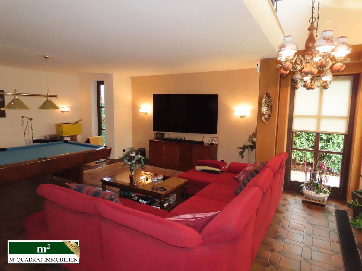 Das freistehende EFH mit EL-Wohnung besticht durch seine architektonische Bauweise. Es wurde im Jahre 1980 in solider Bauweise errichtet. Durch den anmutigen Treppenturm sind die beiden Hauseingänge voneinander getrennt. Der Eingangsbereich ist mit Treppenstufen in Travertin angelegt. Die Türanlage besteht aus massivem Eichenholz mit Butzenverglasung. Der links gelegene Eingangsbereich des Hauptteils ist durch Einbaumöbel und Garderobeneinbauten in rustikalem Charakter geprägt. Zur rechten Seite befindet sich die Gäste-Toilette.