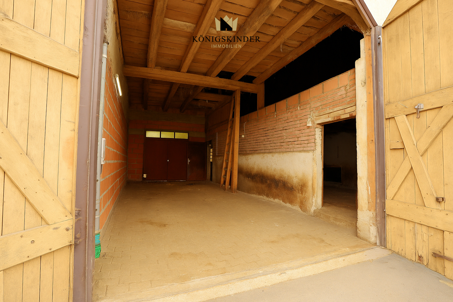 Der Wohnteil ist mit einer massiven Wand getrennt vom Wirtschaftsteil mit der üblichen Scheune mit einem ca. 10 m hohen Luftraum, einem ehemaligen Stall und einem Werkstattraum.