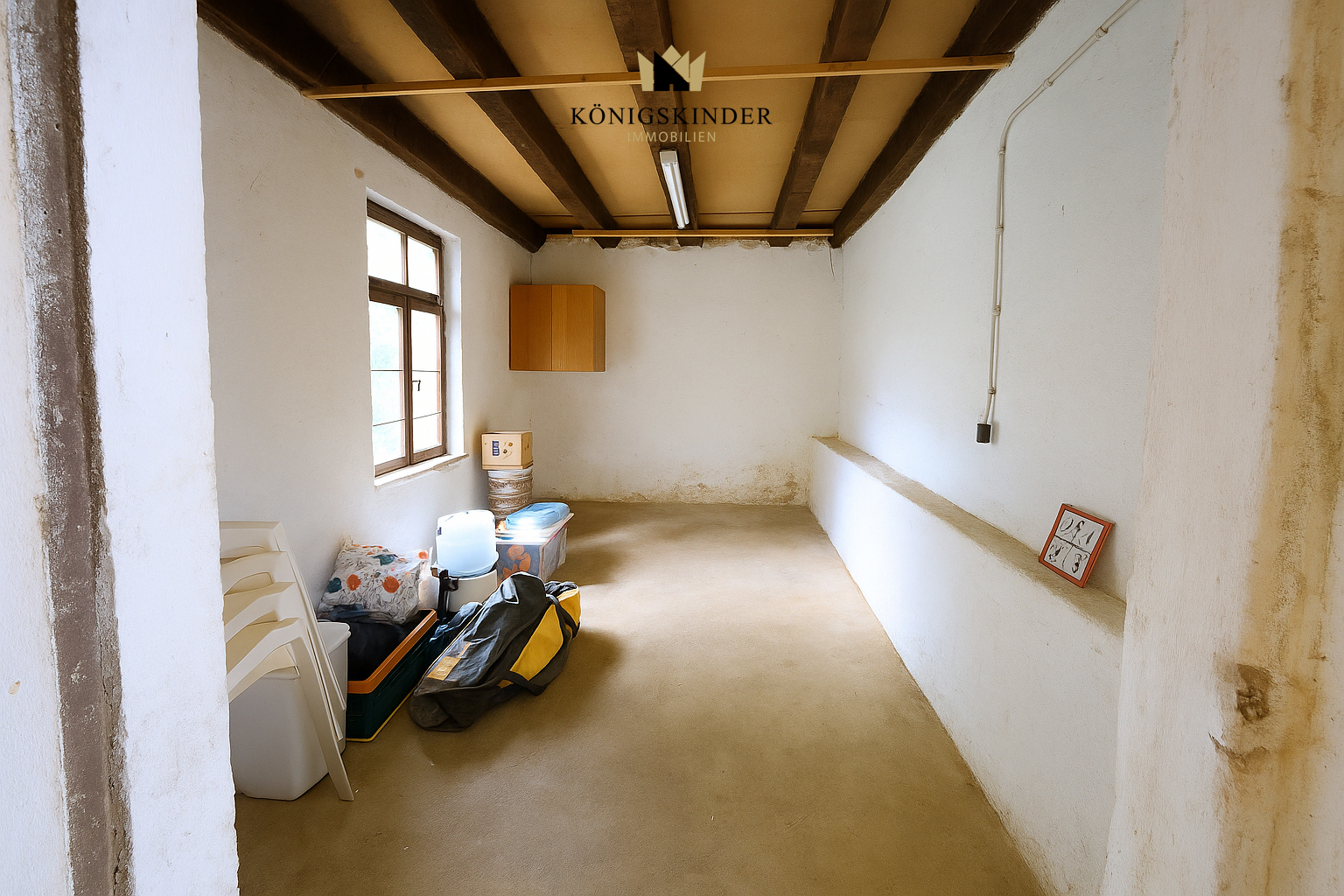 Sieht gut aus......auch von hinten...Im Erdgeschoss geht's erstmal in die Küche...os und drei Zimmer... ...hell und freundlich......und geräumig...Das Duschbad könnte eine Auffrischung brauchen...Freundlicher Empfang im Obergeschossebenfalls mit einer Einbauküche...und direkt daneben das Esszimmer..mit Verbindung zum Wohnzimmer mit Balkon...Platz genug im Schlafzimmer.Ganz neu: das barrierefreie DuschbadHier geht's zum GewölbekellerHoch ins Dachgeschossmit einem vorbereiteten Zimmer......und Platz......zum weiteren Ausbau.Platz für einen Wohnwagen, ein Wohnmobil - was immer Sie unterstellen wollen...Sie betreiben ein Handwerk? Bittesehr...Der Nachbar ist weit genug weg...Ganz einfach vielseitig nutzbarEin stattliches Anwesen