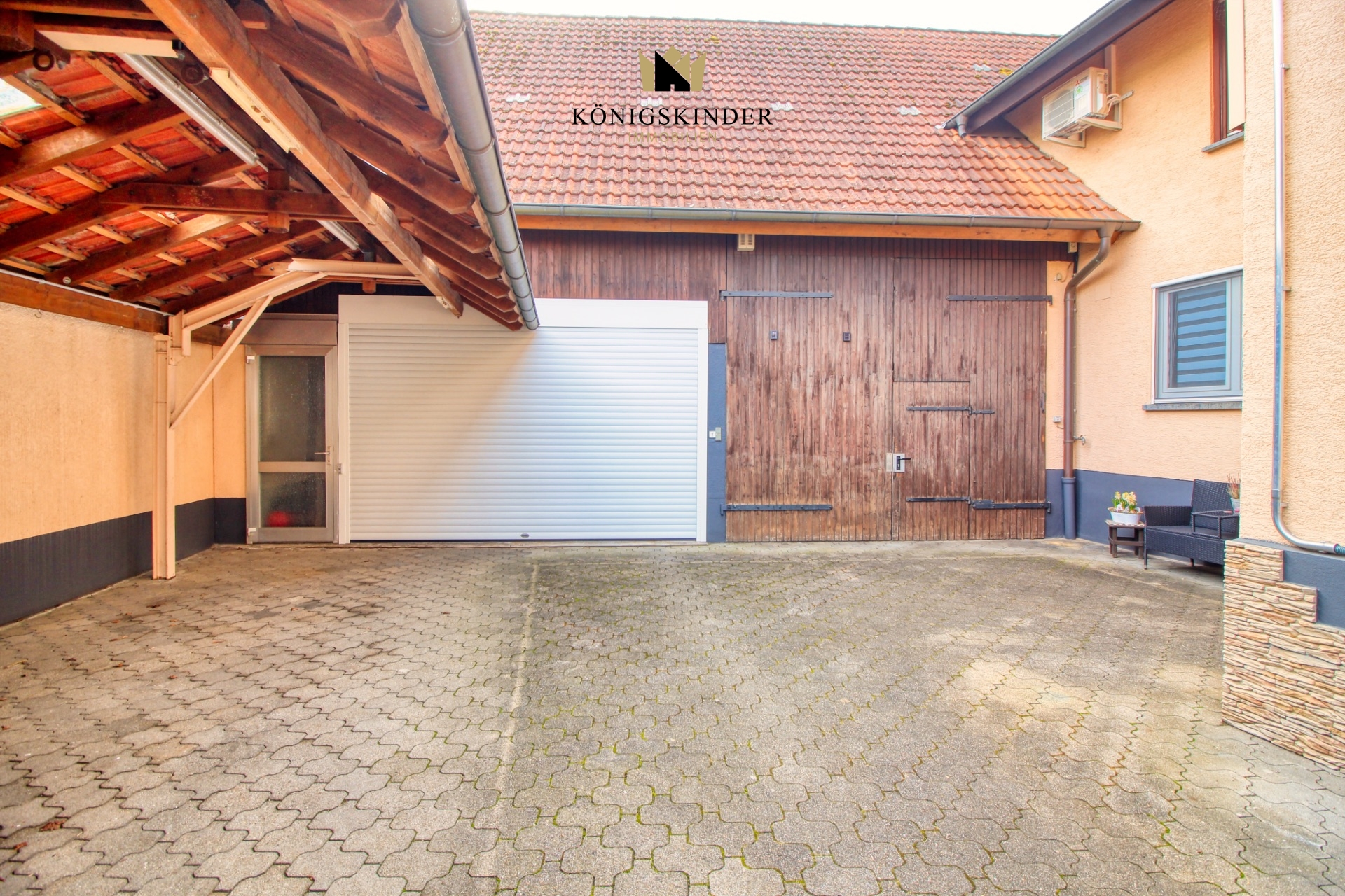 Zum Haus gehört eine Garage mit elektrischem Tor und Platz für zwei Fahrzeuge.