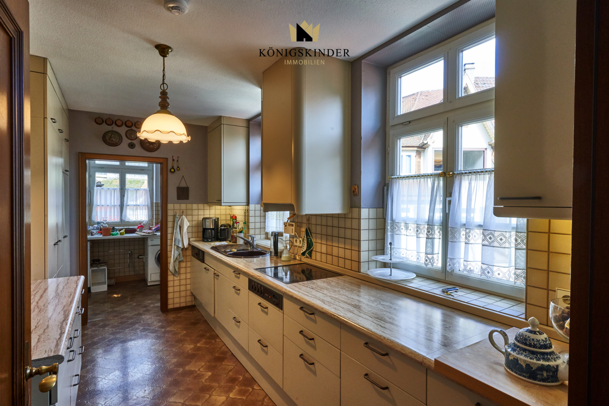 Direkt daneben praktisch angeordnet kommen Sie zur Einbauküche mit separatem Hauswirtschaftsraum - Platz genug auch für Profi-Köche...