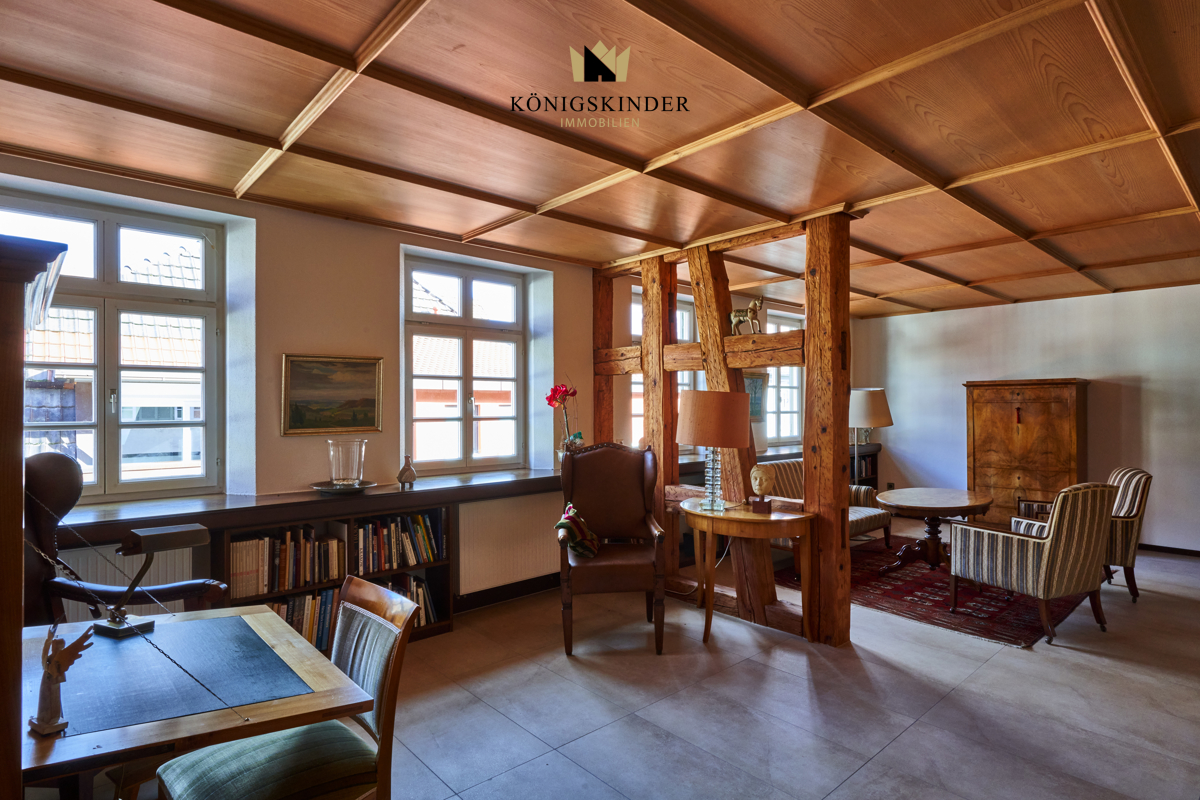 spüren Sie die Atmosphäre alter Zeitenherrschaftlicher EmpfangTreppe über 250 Jahre erhaltenim Stil neu erbautspeisen mit Freude und Freundenzurückhaltend moderne KücheRückzug in die LeseeckeFüße hoch - Ruhe schöpfender Weg zu den ZImmernPlatz für ein Kind......und ein zweites...?das Bad und Gäste-WC abseits......unaufdringlich modernein bisschen Biedermeier...hier geht's zum Elternbereich...Richtung "Sommerzimmer"......oder "Wintergarten"......das könnte Ihr Schlafzimmer sein......mit Blick durch die Balken...sehr bequem: das Duschbad direkt danebenüber der Wohnung: Ihr Homeoffice oder Poetenklause...Hinterhofidylle...stattlich dominante Eckeund in zwei Minuten sind Sie am Neckar...