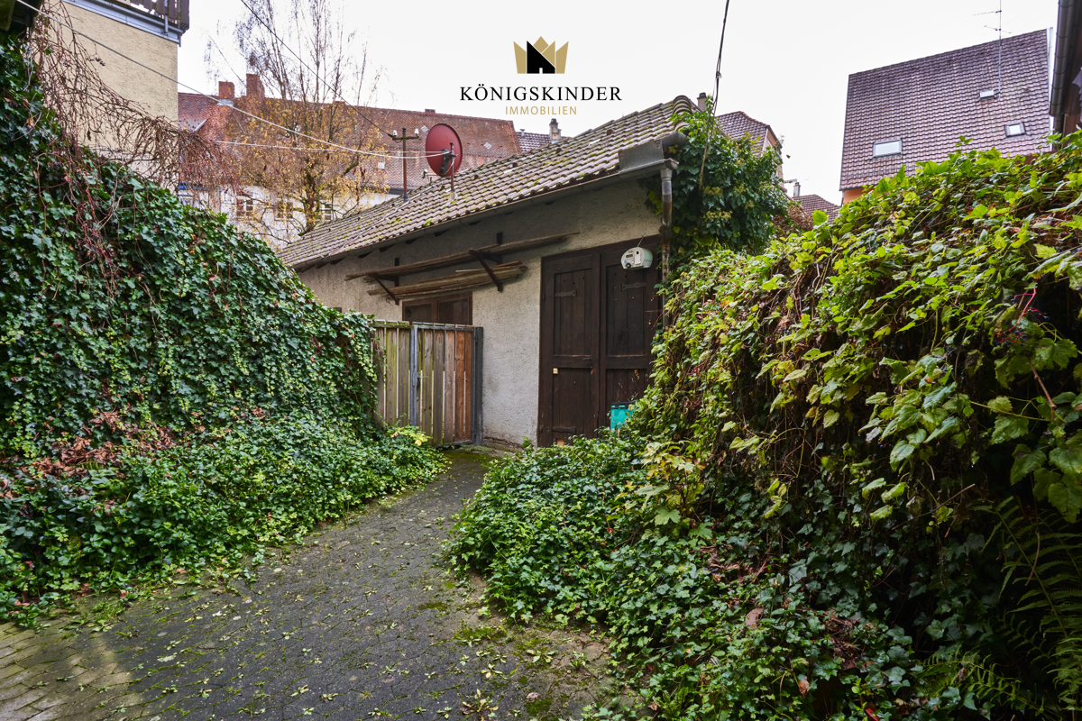 Zur Wohnung gehört ein kleines Flurstück, das von einer Seitenstraße erreichbar ist; derzeit ist es bebaut mit einem Schuppen.